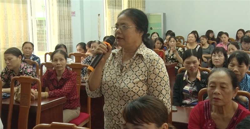 Đại biểu phụ nữ cơ sở phát biểu trao đổi kinh nghiệm tại hội nghị.