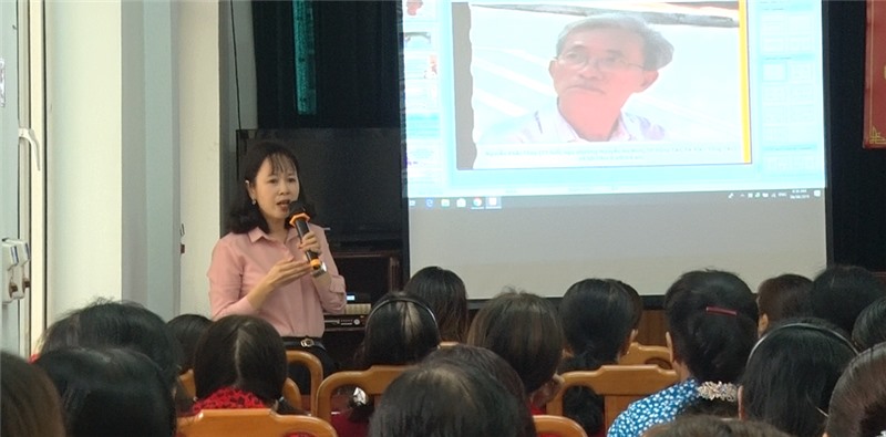 Lãnh đạo Hội LHPN thành phố tuyên truyền, đưa ra một số dẫn chứng về xâm hại tình dục trẻ em trong thời gian vừa qua.