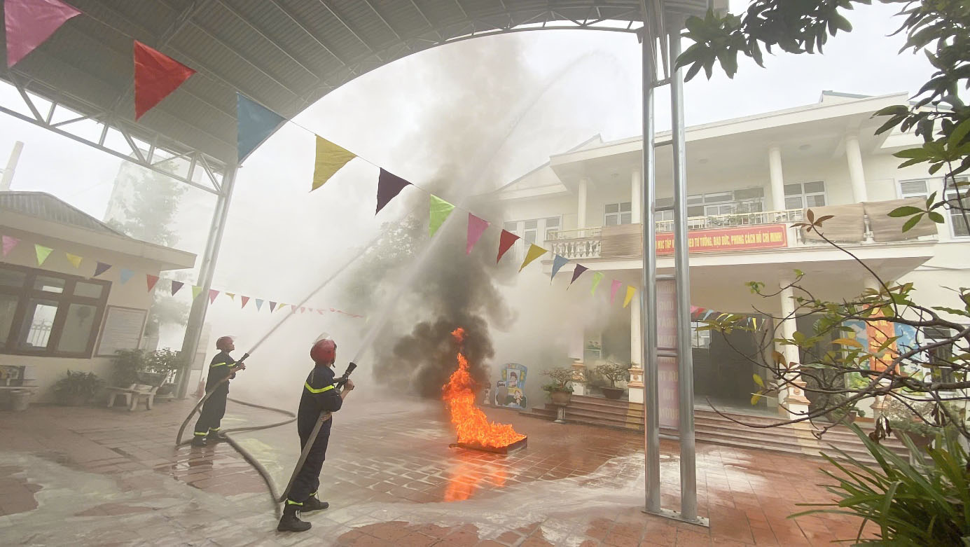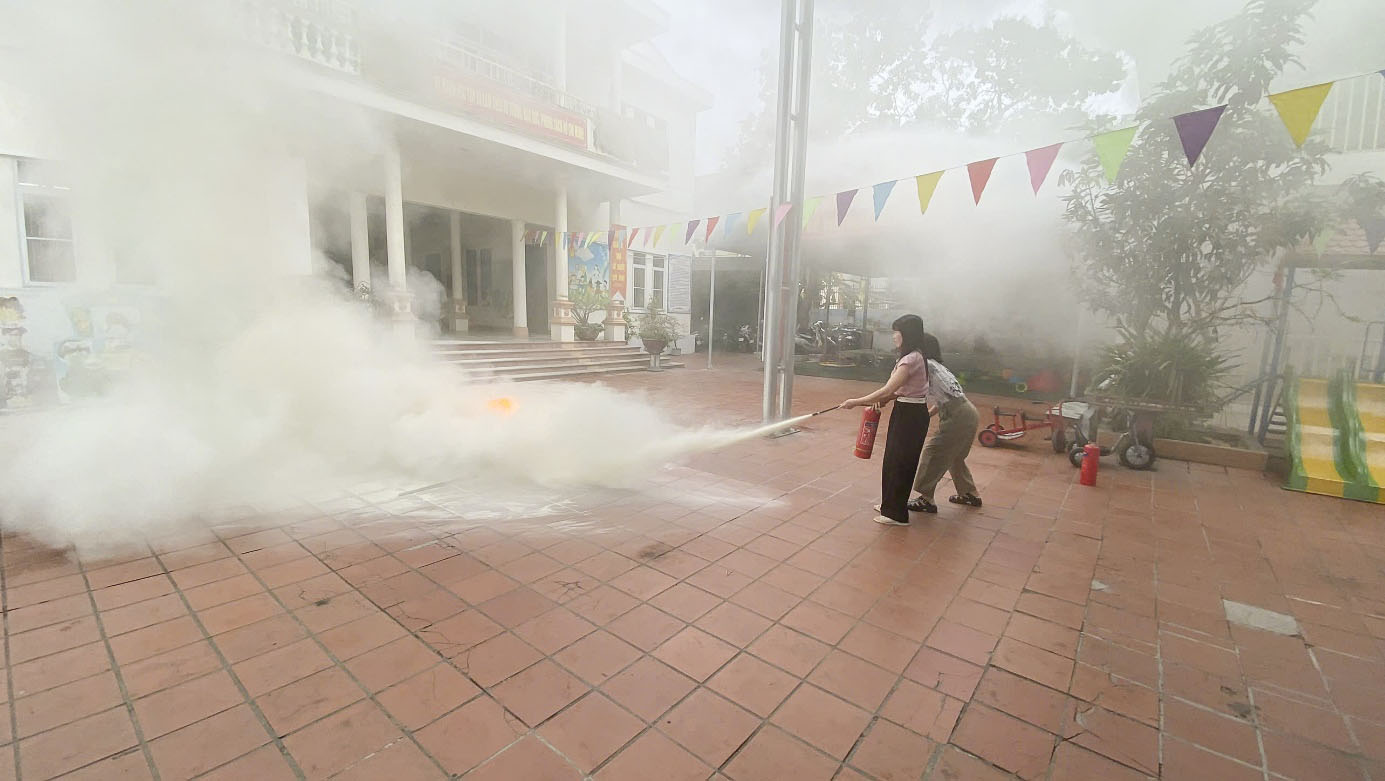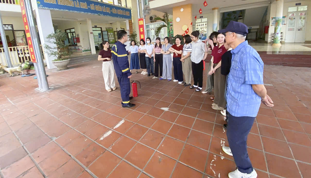 Tuyên truyền và thực tập phương án chữa cháy và cứu nạn, cứu hộ tại Trường Mầm non Trưng Vương