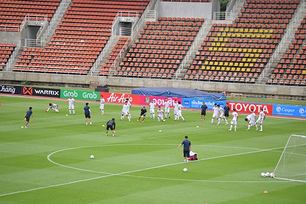 Ngay sau đó, toàn đội Việt Nam tiến hành tập trên sân Thammasat. Các phóng viên báo chí được phép chứng kiến, quay phim và chụp ảnh trong 15 phút đầu. Sau đó, đội tuyển của chúng ta tiến hành tập kín.