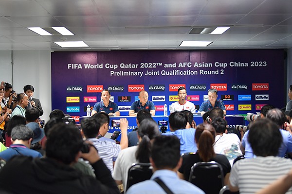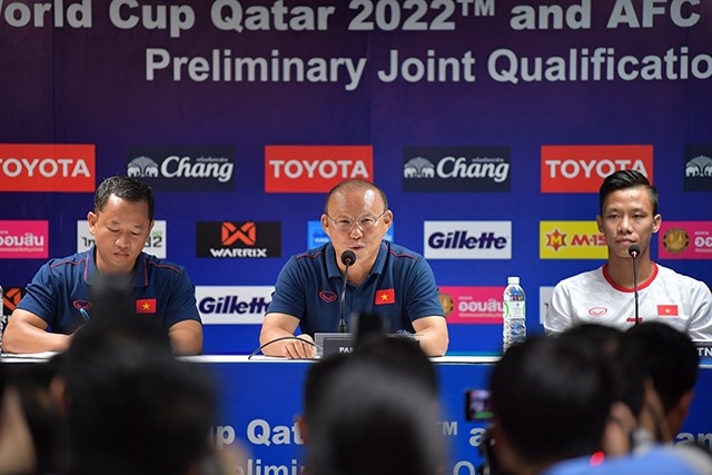 Cuộc họp báo bắt đầu bằng phần trả lời phỏng vấn của hai đại diện đội tuyển Việt Nam là huấn luyện viên (HLV) Park Hang Seo và đội trưởng Quế Ngọc Hải. Các câu hỏi tập trung vào sự chuẩn bị của đội tuyển Việt Nam cho trận gặp Thái-lan thuộc vòng loại World Cup 2022 khu vực châu Á sẽ diễn ra tối mai 5-9.