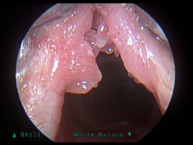 Hình ảnh nội soi phát hiện ra u nhú thanh quản.