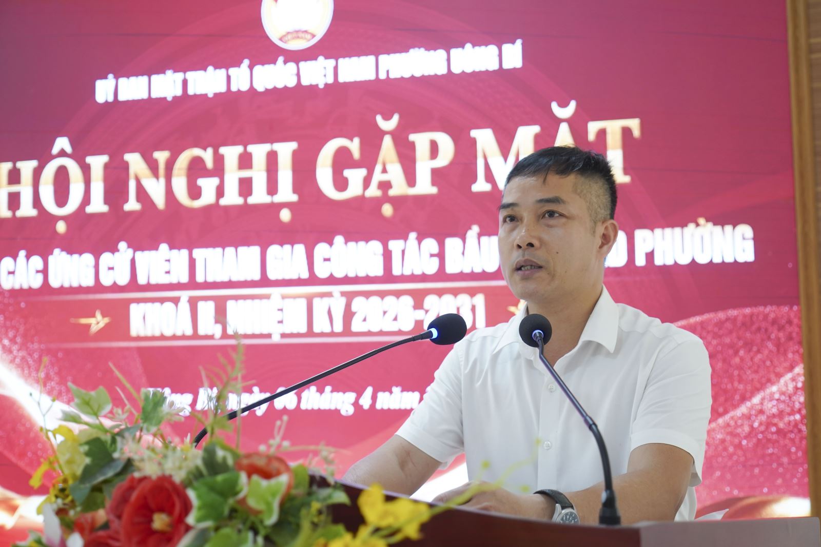 Phát biểu tại buổi gặp mặt, đồng chí Nguyễn Văn Thành - Ủy viên BTV Đảng ủy, Phó Chủ tịch HĐND phường ghi nhận những đóng góp tích cực của các ứng cử viên tham gia bầu cử vào HĐND phường Uông Bí nhiệm kỳ 2026-2031. Đồng thời nhấn mạnh: Mặc dù không tham gia vào HĐND Phường, các ứng cử viên cần tiếp tục phát huy vai trò, trách nhiệm ở các vị trí khác nhau, tiếp tục đóng góp vào sự phát triển chung của phường Uông Bí.