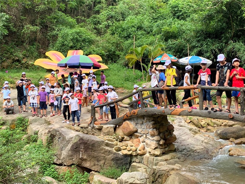 Các em học sinh vui chơi, trải nghiệm tại Điểm du lịch sinh thái Lựng Xanh.