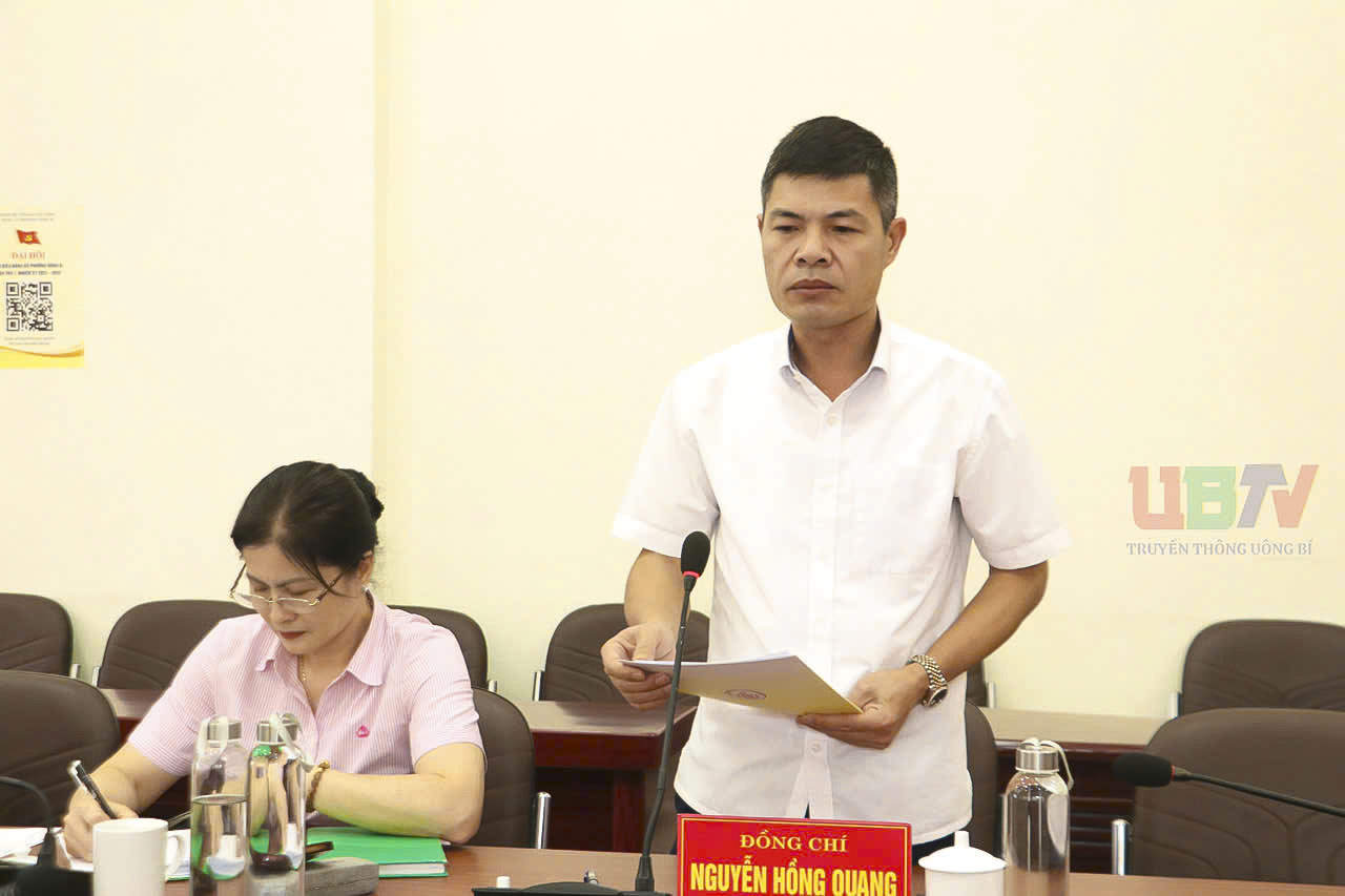 Đồng chí Nguyễn Hồng Quang - Ủy viên BTV Đảng ủy, Chủ tịch UB MTTQ phường, thành viên Ban đại diện phát biểu ý kiến.