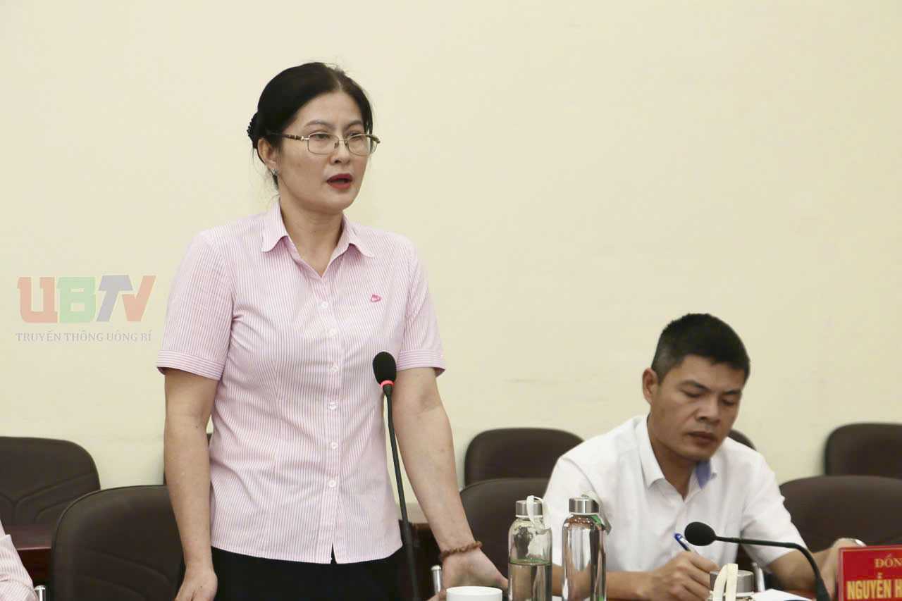 Lãnh đạo phòng giao dịch Ngân hàng CSXH Uông Bí phát biểu ý kiến.