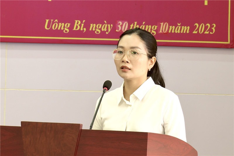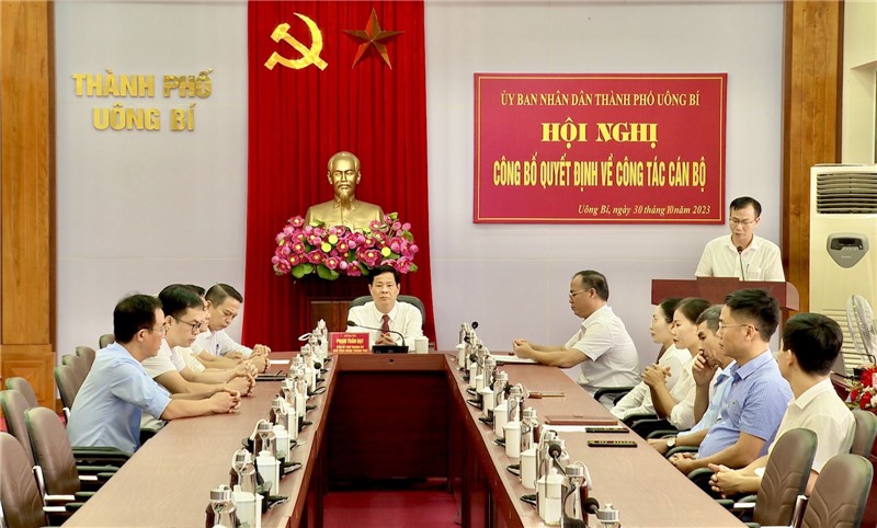 Tại hội nghị, Lãnh đạo Phòng Nội vụ thành phố đã công bố Quyết định của Chủ tịch UBND Thành phố về việc tiếp nhận đồng chí Nguyễn Thu Hằng - Uỷ viên Uỷ ban Kiểm tra Thành uỷ Uông Bí đến nhận công tác tại Thanh tra Thành phố, bổ nhiệm giữ chức vụ Phó chánh Thanh tra Thành phố, thời gian kể từ ngày 01/11/2023, thời hạn bổ nhiệm là 5 năm.