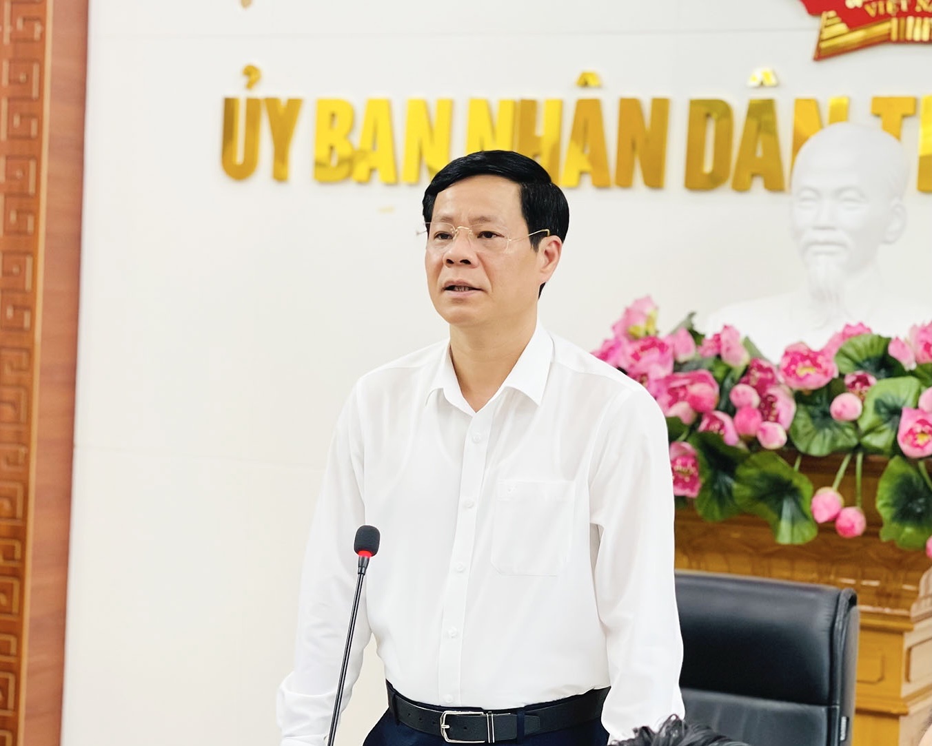 Đồng chí Phạm Tuấn Đạt, Phó Bí thư Thành uỷ, Chủ tịch UBND thành phố phát biểu chỉ đạo cuộc họp.