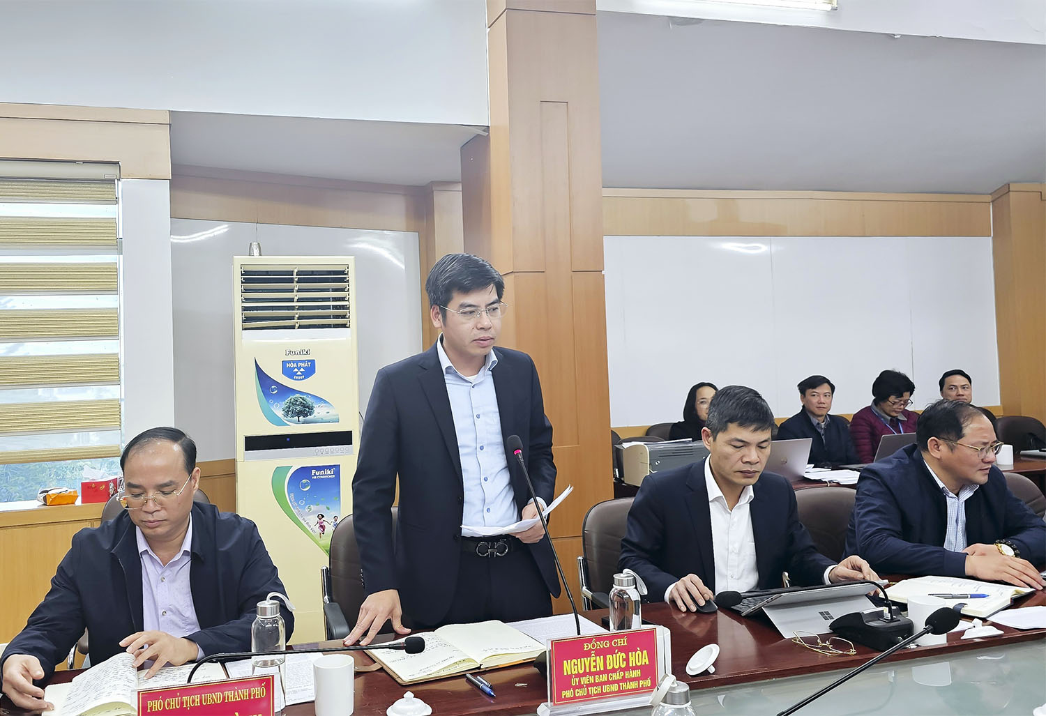 Các đồng chí lãnh đạo UBND thành phố phát biểu ý kiến tại hội nghị.