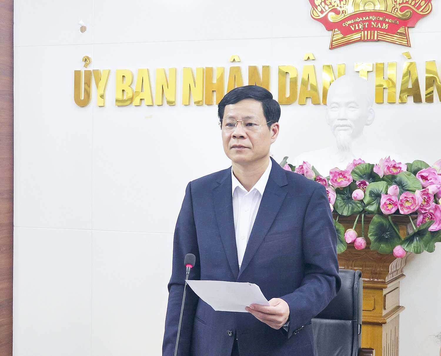 Đồng chí Phạm Tuấn Đạt, Phó Bí thư Thành uỷ, Chủ tịch UBND thành phố phát biểu kết luận tại hội nghị.