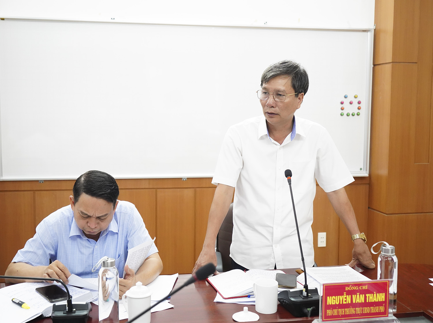 Đồng chí Nguyễn Văn Thành, UVBTV Thành uỷ, Phó Chủ tịch Thường trực UBND thành phố phát biểu tại hội nghị.