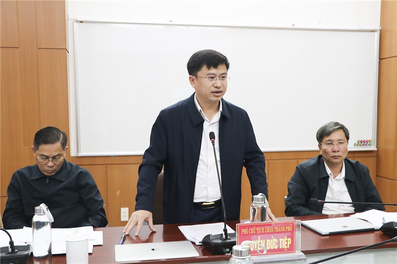 Đồng chí Nguyễn Đức Tiệp, PCT UBND thành phố phát biểu tại hội nghị.