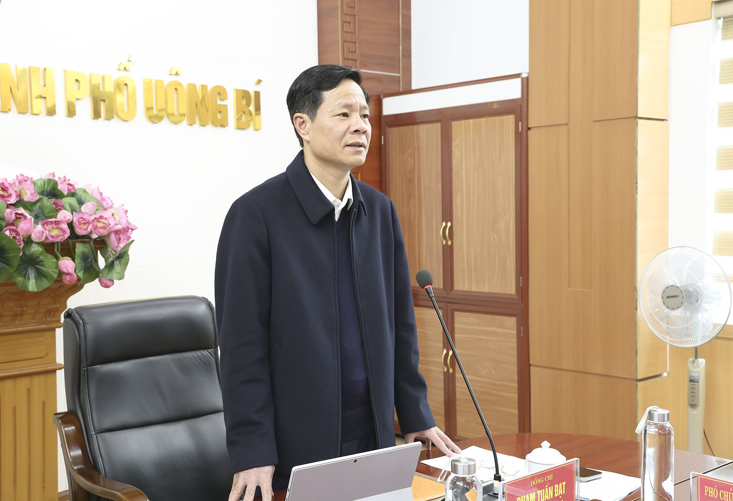 Đồng chí Chủ tịch UBND thành phố cũng giải quyết các tờ trình của các phòng, ban, UBND xã, phường trình lên UBND thành phố.