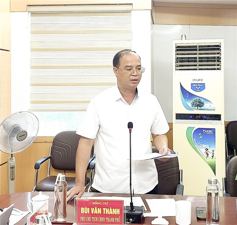 Đồng chí Bùi Văn Thành, Phó Chủ tịch UBND thành phố phát biểu tại hội nghị.