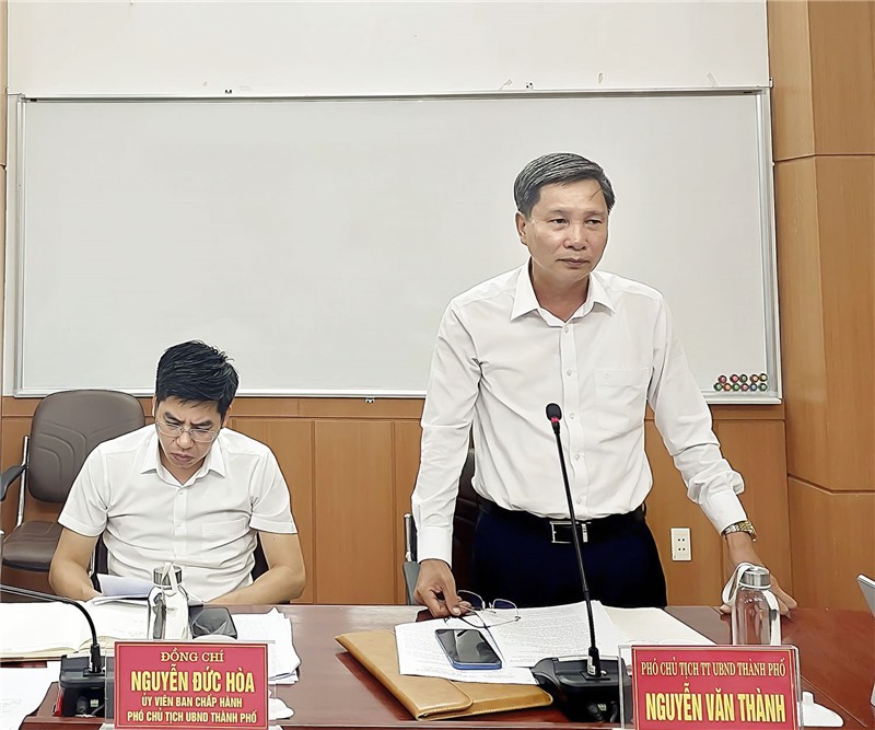 Đồng chí Nguyễn Văn Thành, UVBTV, Phó Chủ tịch Thường trực UBND thành phố phát biểu tại hội nghị.