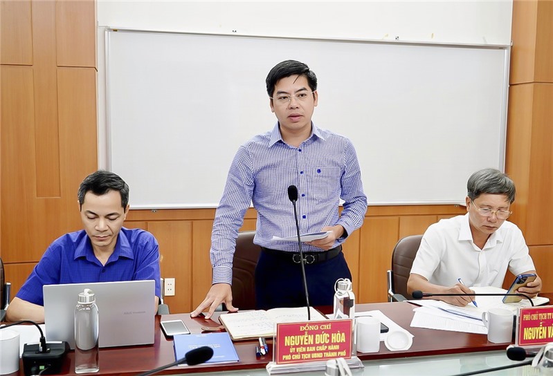 Đồng chí Nguyễn Đức Hoà – Phó Chủ tịch UBND Thành phố phát biểu ý kiến.