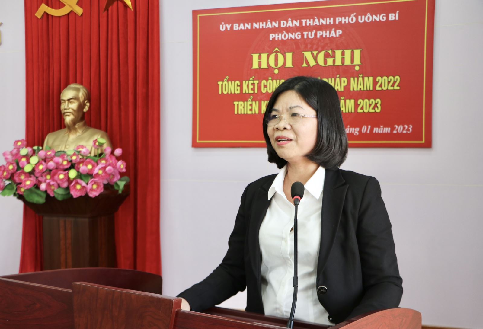 Đồng chí Phạm Thị Thuý - Trưởng phòng Tư pháp Thành phố triển khai nhiệm vụ công tác năm 2023.
