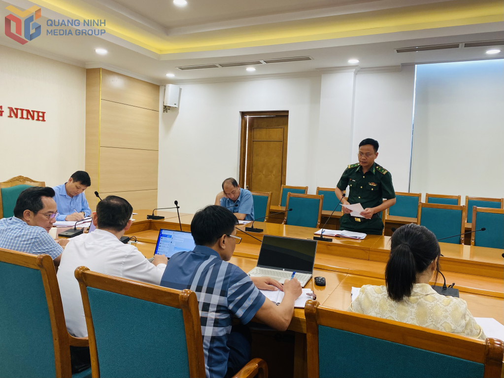 Đại diện Bộ đội Biên phòng tỉnh Quảng Ninh phát biểu tại cuộc họp.