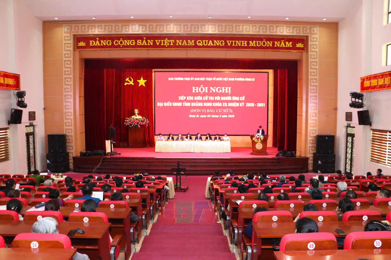 Chiều 5/3, tại phường Uông Bí, các ứng cử viên Đại biểu HĐND tỉnh Quảng Ninh nhiệm kỳ 2026 – 2031, đã có buổi tiếp xúc, vận động bầu cử và lắng nghe ý kiến, kiến nghị cử tri 3 phường Uông Bí, Vàng Danh và Hiệp Hòa là các phường thuộc đơn vị bầu cử số 3 của tỉnh Quảng Ninh. Hội nghị được tổ chức dưới hình thức trực tiếp và trực tuyến tới các điểm cầu phường Vàng Danh và Phường Hiệp Hòa.