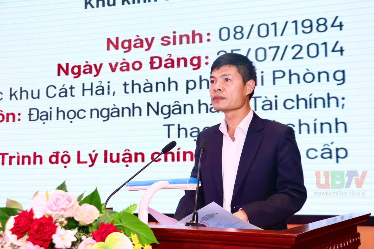 Đồng chí Nguyễn Hồng Quang - Ủy viên BTV Đảng ủy, Chủ tịch UB MTTQ phường thông qua tiểu sử các ứng cử viên.