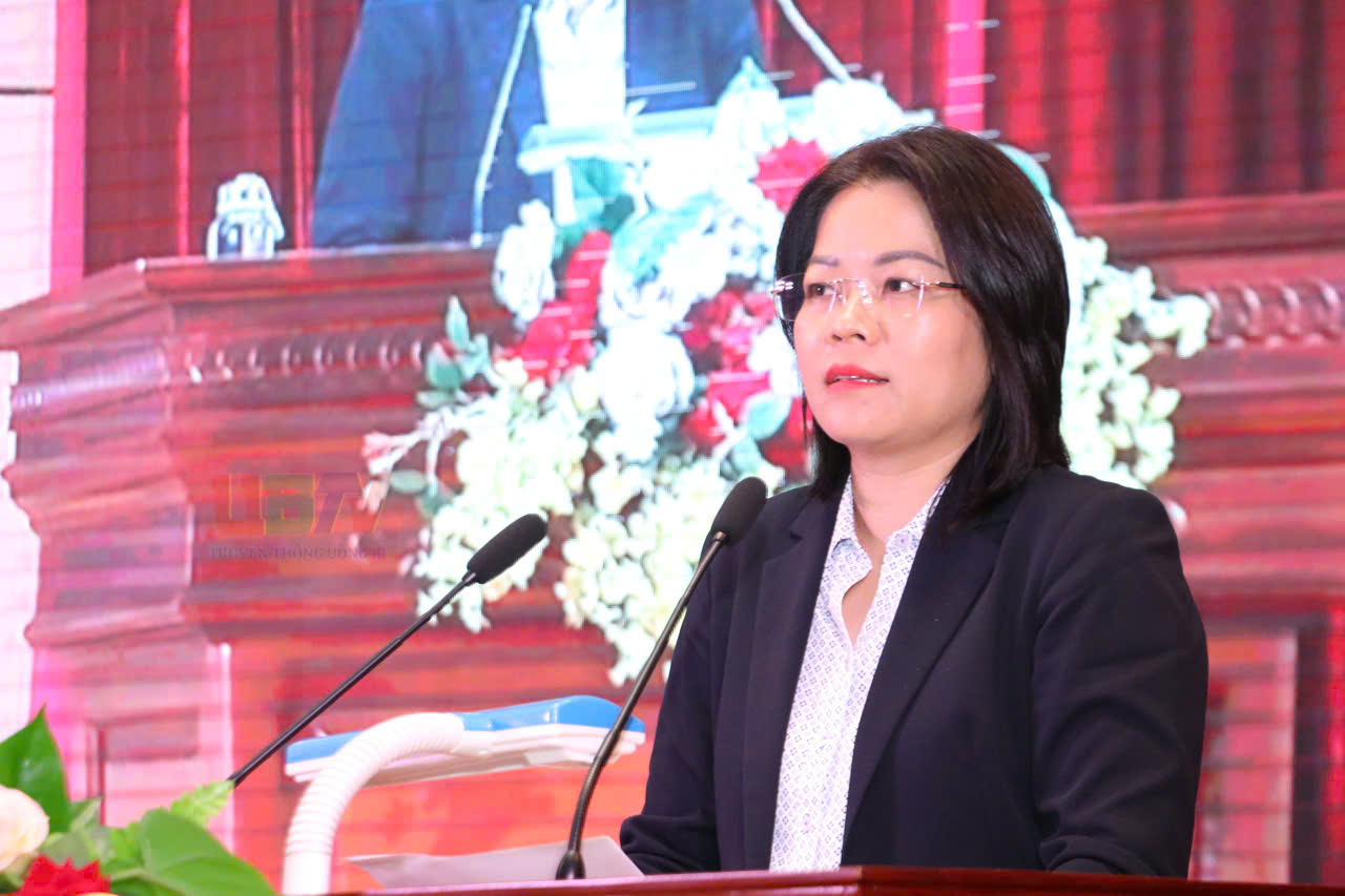 Bà Nguyễn Vũ Thu Hòa - PCT Ủy ban MTTQ tỉnh, Chủ tịch Hội LHPN tỉnh trình bày chương trình hành động.