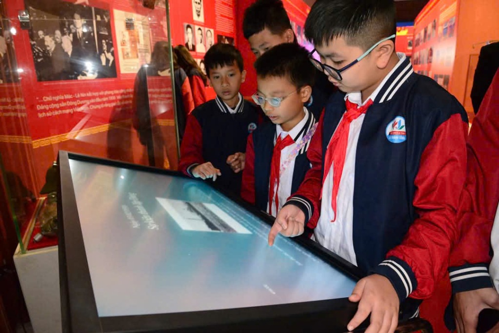 Học sinh sử dụng ứng dụng tra cứu, xem thông tin về Bảo tàng Quảng Ninh.