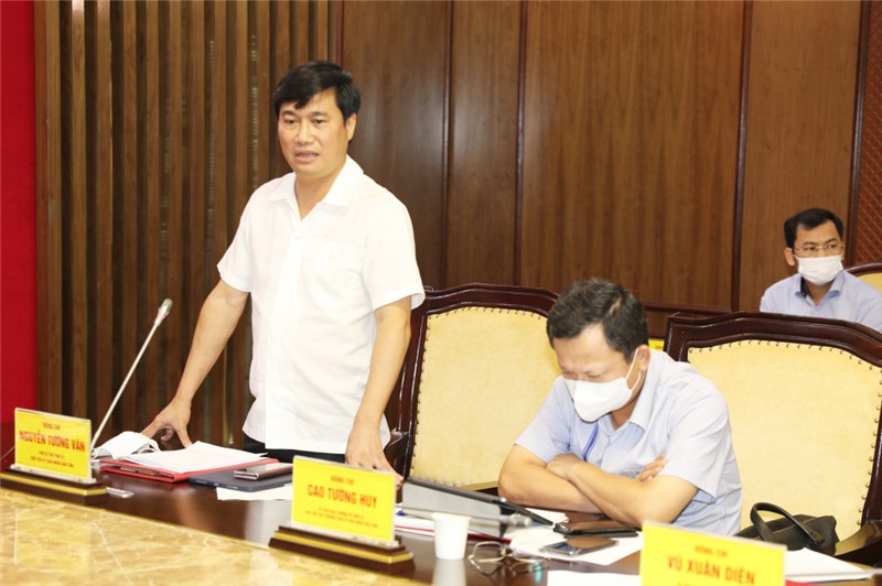 Đồng chí Nguyễn Tường Văn, Phó Bí thư Tỉnh ủy, Chủ tịch UBND tỉnh phát biểu tại cuộc họp.