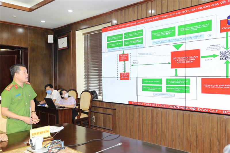 Cuộc họp đã nghe đồng chí Vũ Văn Tấn, Giám đốc Trung tâm Dữ liệu quốc gia dân cư, Cục cảnh sát QLHC về TTXH, Bộ Công an giới thiệu về phần mềm quản lý công dân vùng dịch, mô hình áp dụng giấy đi đường bằng mã QR Code được tích hợp các biện pháp phòng chống dịch, truy vết đầy đủ. Theo đó, phần mềm được thiết kế trên hệ thống Cơ sở dữ liệu quốc gia về dân cư, ứng dụng ngay trên toàn quốc, giúp xác minh nhanh chóng thông tin công dân, đặc biệt là công dân tạm trú, lưu trú, lang thang cơ nhỡ thuộc diện hỗ trợ nếu kê khai đều được hỗ trợ tại nơi cư trú... Đặc biệt, phần mềm sẽ tiết kiệm chi phí trong phòng chống dịch, dữ liệu công dân được bảo mật.