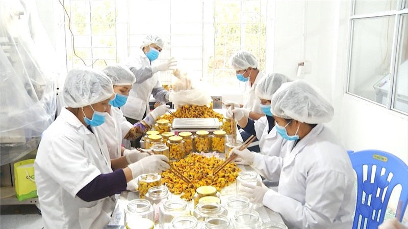Sản xuất sản phẩm từ trà hoa vàng tại Công ty CP Kinh doanh lâm sản Đạp Thanh (huyện Ba Chẽ).