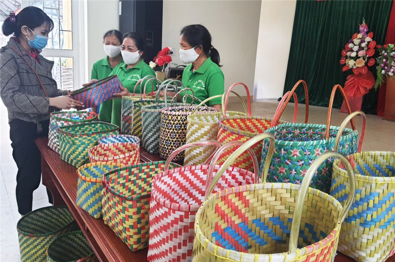 Từ những sợi nhựa đã qua sử dụng, phụ nữ khu 5B, phường Quang Trung (TP Uông Bí) đã tạo ra những sản phẩm nhiều tiện ích.
