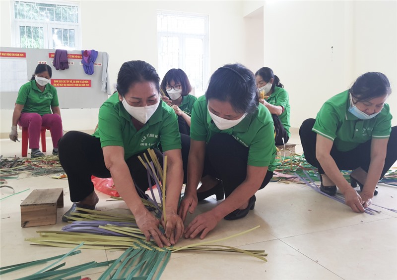 Phụ nữ khu 5B tự học và dạy nhau kỹ năng đan, tạo hình sản phẩm.