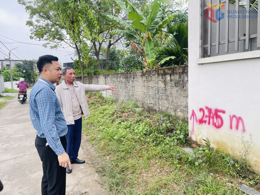 Ông Lê Văn Luận (bên phải), Bí thư Chi bộ, Trưởng khu phố Thanh Sơn 9, phường Uông Bí giới thiệu ranh giới phần diện tích bị ảnh hưởng của người dân.