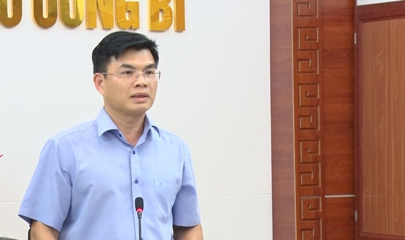 Đồng chí Nguyễn Mạnh Hà, Phó Bí thư Thành ủy, Chủ tịch UBND thành phố phát biểu tại hội nghị đầu cầu Uông Bí.