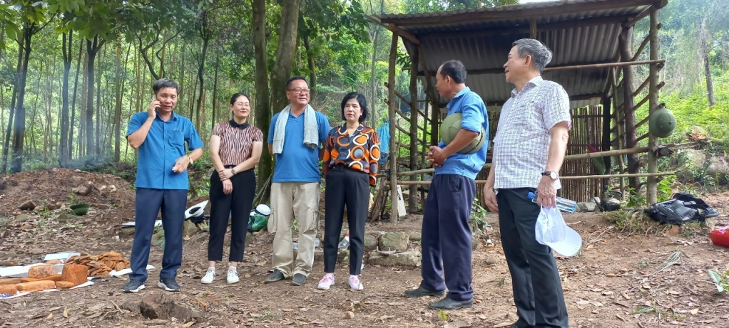 Cán bộ chuyên môn TP Uông Bí khảo sát phế tích chùa Hồ trên địa bàn phường Bắc Sơn.
