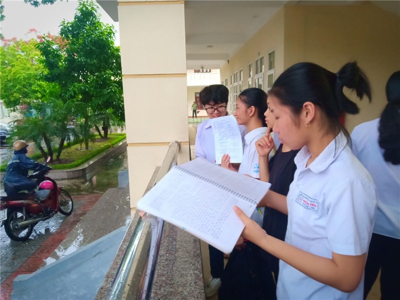 Thí sinh tranh thủ thời gian trước giờ thi ôn lại kiến thức.