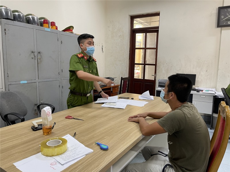 Cán bộ Công an phường Thanh Sơn (TP Uông Bí) lấy lời khai của đối tượng có biểu hiện sử dụng ma túy, ngày 6/8/2021.