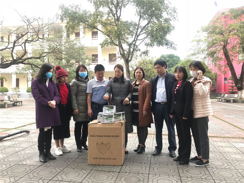 Phát khẩu trang miễn phí tại Trường THPT Uông Bí.