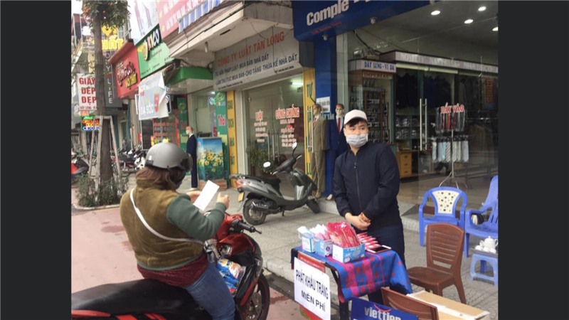Cửa hàng thời trang Toản Bích, một trong các điểm phát khẩu trang miễn phí tại thành phố Uông Bí.
