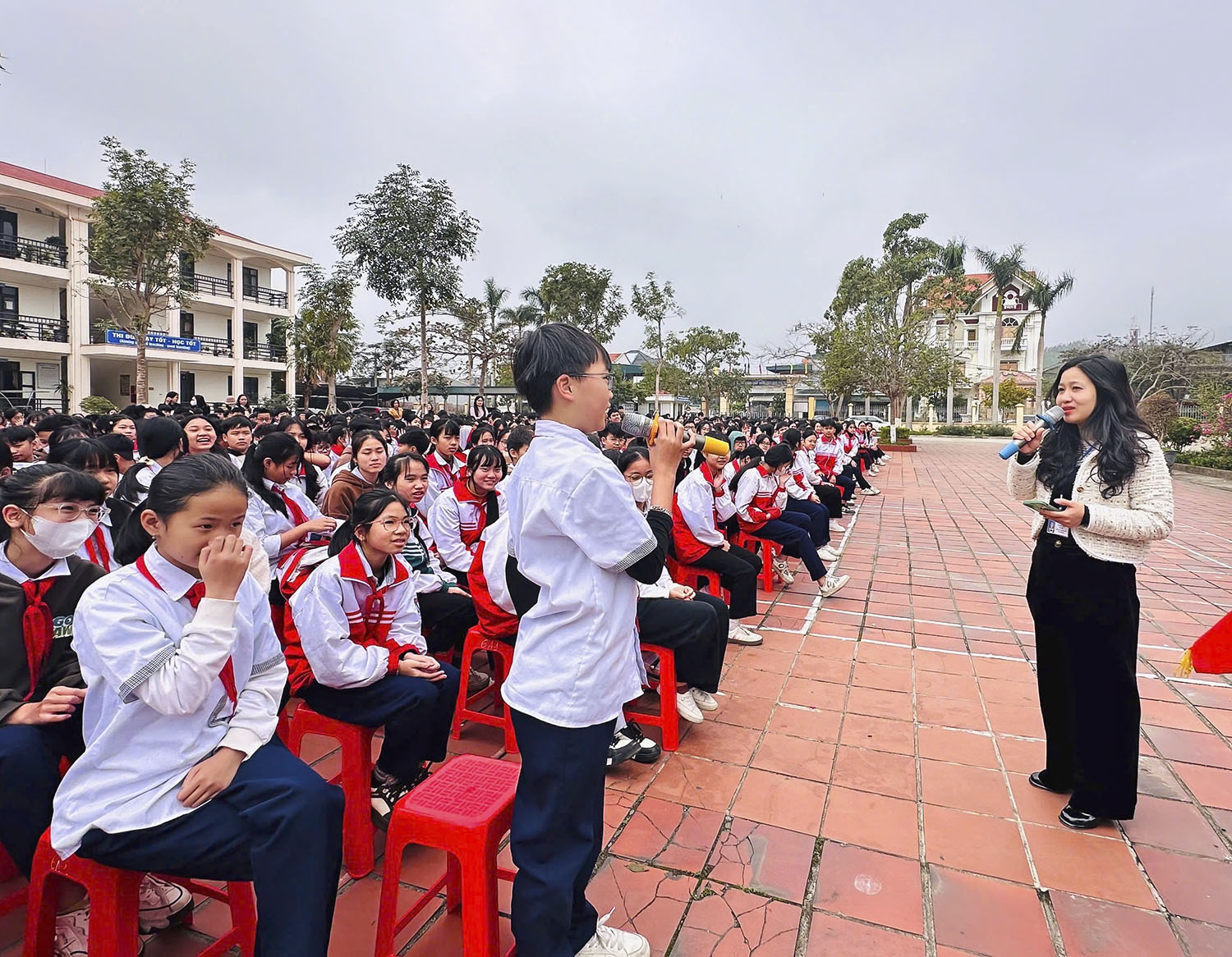 Học sinh Trường THCS Nguyễn Văn Cừ ngoại khóa tìm hiểu về chính sách dân số.