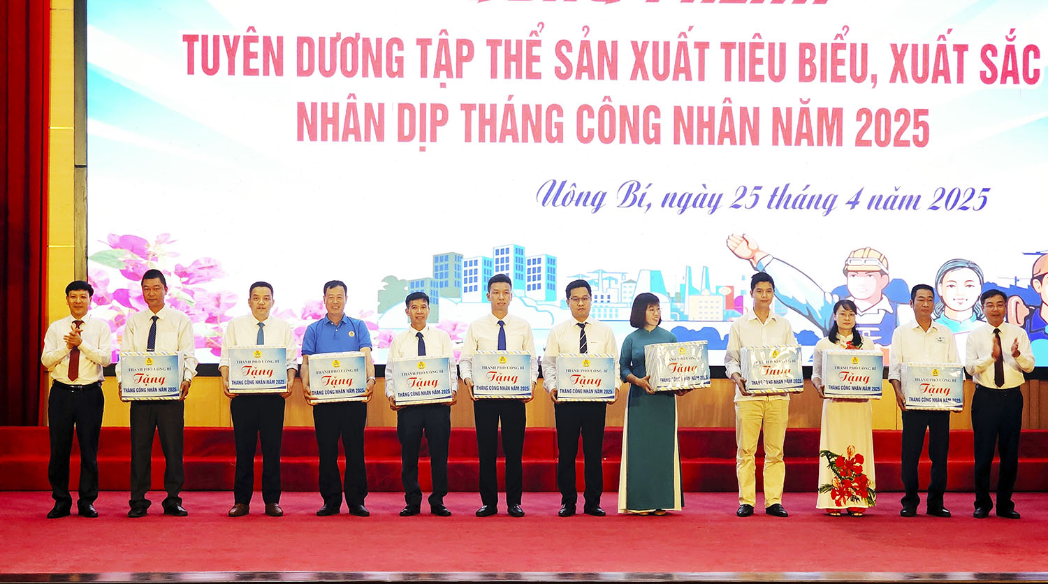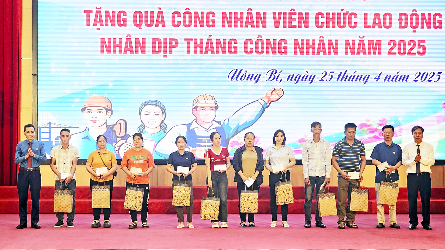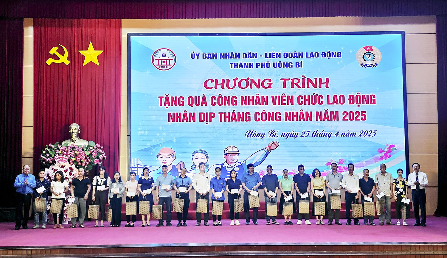 Nhân dịp này, LĐLĐ tỉnh và thành phố Uông Bí đã trao tặng 35 suất quà cho công nhân, viên chức, lao động có hoàn cảnh khó khăn và 10 suất quà cho các tổ, đội tiêu biểu xuất sắc, hưởng ứng Tháng Công nhân năm 2025.
