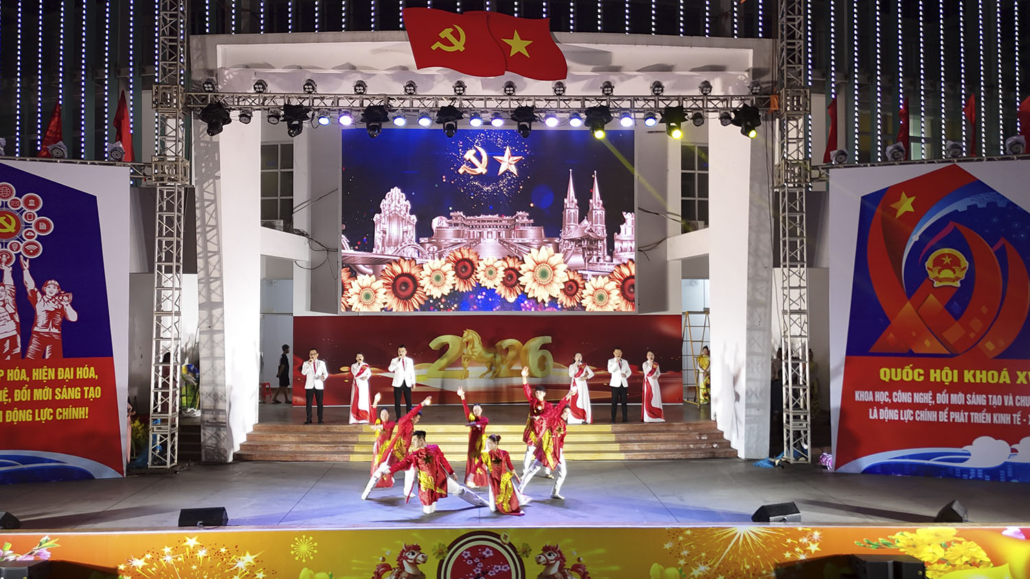 Tối ngày 2/4/2026, tại Quảng trường 25/2, chương trình lưu diễn trong Liên hoan Tuyên truyền lưu động toàn quốc đã diễn ra đầy sôi động, rực rỡ sắc màu với sự tham gia của 5 Đội tuyên truyền lưu động đến từ các tỉnh gồm: Gia Lai, Quảng Ngãi, Thanh Hóa, Thái Nguyên và Lai Châu.
