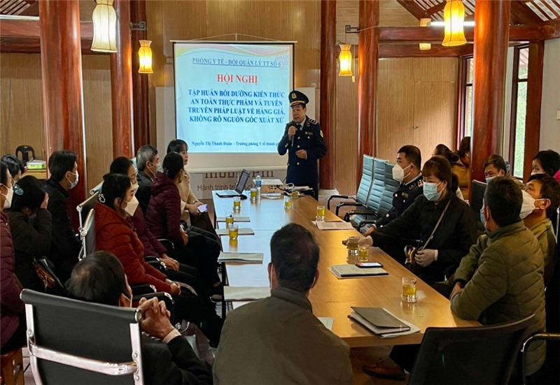 Đội QLTT số 6 phối phợp tổ chức tuyên truyền pháp luật trong hoạt động thương mại, dịch vụ cho các hộ kinh doanh trong khu vực tổ chức lễ hội Yên Tử (TP Uông Bí). Ảnh: Đội QLTT số 6