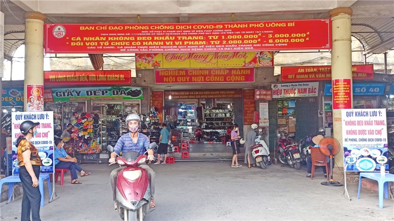 Uông Bí tăng cường công tác phòng, chống dịch bệnh Covid-19 trong dịp lễ tại các chợ truyền thống