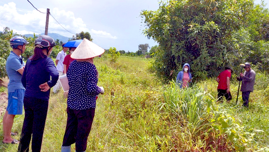 Phường Phương Đông (TP Uông Bí) phối hợp với các phòng, ban của thành phố cắm lại mốc ranh giới cho hộ dân sau khi có kết quả giải quyết về tranh chấp đất đai.