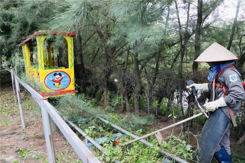 Các đơn vị dọn vệ sinh, chăm sóc cây xanh, thảm cỏ, duy tu, bảo dưỡng dụng cụ thể thao, khu vui chơi trong khuôn viên công viên.
