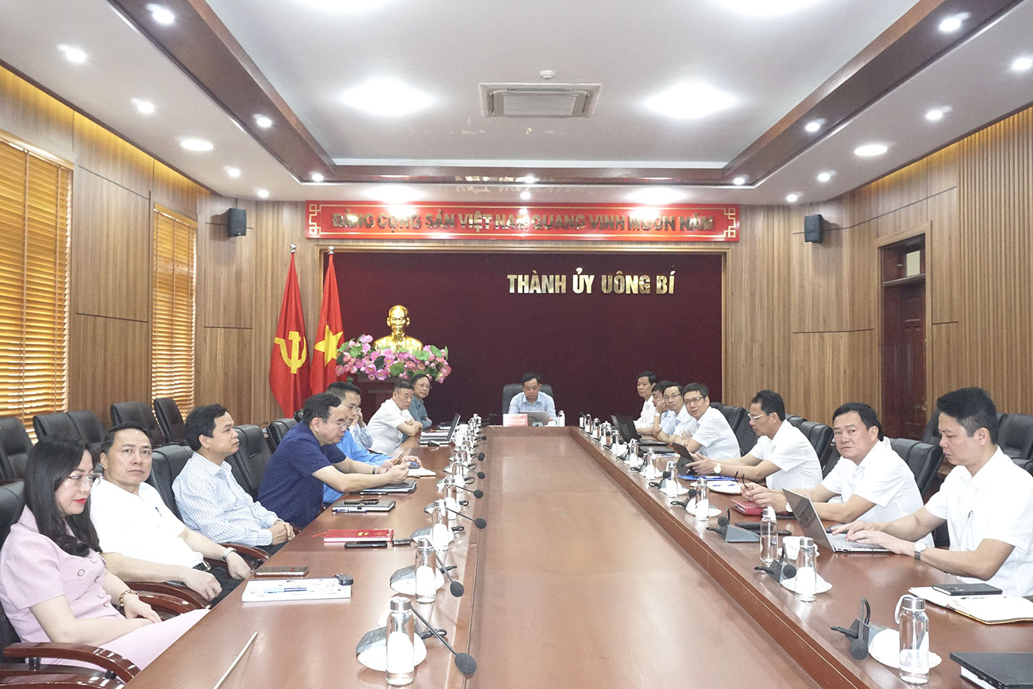Tại điểm cầu thành phố Uông Bí, tham dự hội nghị có các đồng chí: Mai Vũ Tuấn – Ủy viên BCH Đảng bộ tỉnh, Bí thư Thành ủy; Nguyễn Chiến Thắng – Phó Bí thư Thường trực Thành ủy, Chủ tịch HĐND thành phố; Phạm Tuấn Đạt – Phó Bí thư Thành ủy, Chủ tịch UBND thành phố; các đồng chí trong Ban Thường vụ Thành ủy cùng lãnh đạo các phòng, ban, ngành của thành phố.