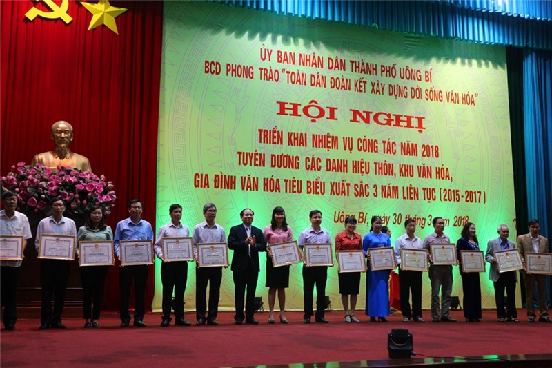 Lãnh đạo TP Uông Bí khen thưởng các tập thể, cá nhân có thành tích xuất sắc trong thực hiện phong trào “Toàn dân đoàn kết xây dựng đời sống văn hóa”.