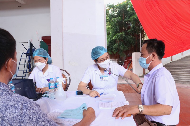 Tại các điểm tiêm, đội ngũ y bác sỹ tiến hành tư vấn, khám sàng lọc cho các đối tượng.