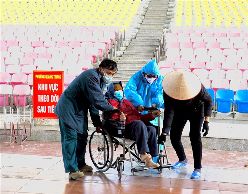 Các lực lượng hỗ trợ người dân tham gia tiêm chủng.