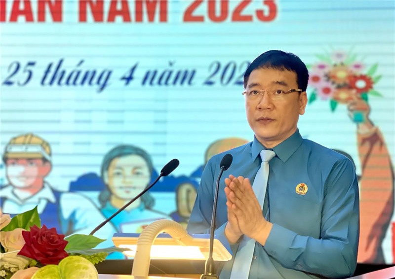 Đồng chí Tô Xuân Thao, Chủ tịch LĐLĐ tỉnh Quảng Ninh phát biểu tại chương trình.